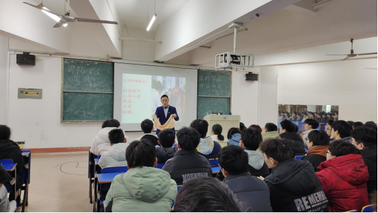 为了让逃生演练安全有序开展,实践演练之前,学生科特邀请退役消防员、消防安全专职讲师帅晖开展消防安全知识讲座,对全体寝室长进行逃生演练培训。