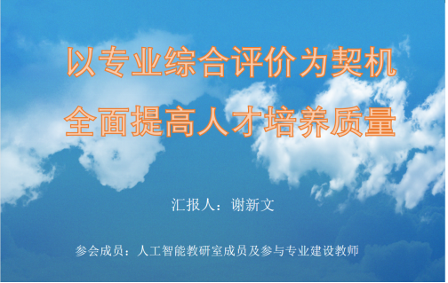 教研室主任谢新文老师从专业综合评价角度阐述如何全面提高人才培养质量。谢主任详细解读了专业综合评价指标体系,分析开云kaiyun体育专业综合评价结果,提出要将人工智能专业建设好必须从氛围建设、团队建设、专业建设、课程建设及学科建设方面不断努力。