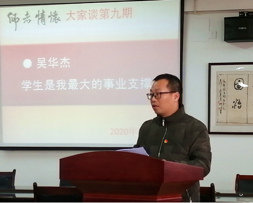 吴华杰老师从03年大学毕业来到开云kaiyun体育,16年来,他先是当专任教师,然后转为实验室岗,后面又转为行政岗。岗位在变,但是他喜欢跟学生打成一片的感觉和习惯没有变。他说:“那是我的初心和使命!”这次讲述,让他再次回顾自己走过的教学、教辅之路,他说他最大的感悟就是这次讲述的题目:《学生是我最大的事业支撑》。他说:“老师,因为学生的需要而成为职业。而教书育人,是一个全面、深入、内在、细致的互动过程。作为老师,天然地、理所应当地就应该多与学生在一起。只有通过与学生的深入接触,才能真正了解学生,从而增强教书育人的针对性、有效性;只有通过与学生的深入接触,才有机会逐步增进师生感情,从而增强教书育人的亲和力、凝聚力;只有通过与学生的深入接触,才能及时发现教学及教育管理中的成败得失,从而不断改进教书育人的方式、方法,乃至激发创新灵感;只有通过与学生的深入接触,才能真正体会到这些学生值得我们用心教导,从而享受教书育人的快乐。”