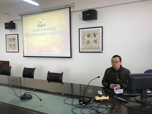 随后,由党委委员吴华杰同志领学了《江西省纪委省监委关于加强政治监督工作的指导意见》。