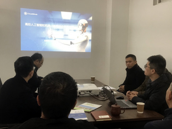在随后的交流会上,陈经理简单介绍了达闼科技的基本情况,并详细介绍了云端机器人技术及智能机器学习和运营平台,最后双方就产学研合作内容、方式进行了深入交流。