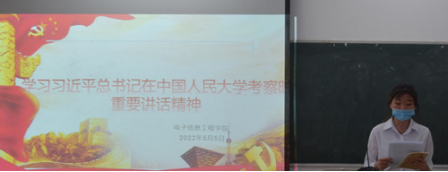 学生团委副书记刘柯欣同学领学了习近平总书记在中国人民大学考察时讲话原文。