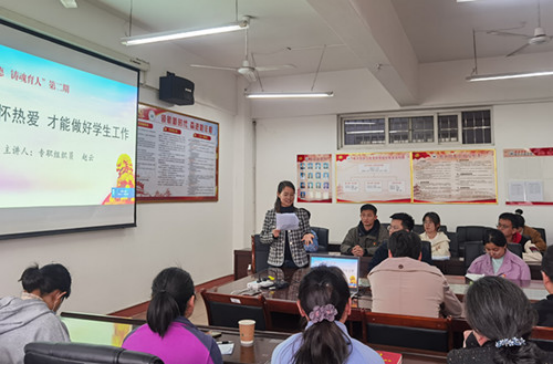 赵云老师主讲的题目是《心怀热爱才能做好学生工作》。赵老师结合自身实际从认同感是做好各项工作的基础和前提、要善于发现学生的闪光点以及要设身处地替学生着想三个方面讲述了只有心怀热爱,才能做好学生工作,才能更好地实现自身的价值。