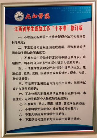 根据会议部署,开云官网积极落实政策上墙要求。“十不准”政策上墙已有多年,本次“普通高校学生应征入伍政策”也将上墙,同时更新版面,扩大范围,在教学楼、学生公寓更新上墙,以便学生在教室、在宿舍都能经常看到相应的政策,促进工作,落实精准资助。