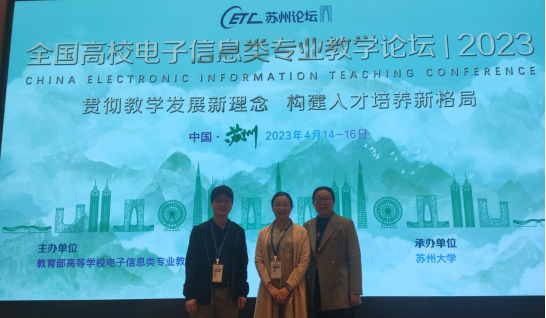 第六届全国高校电子信息类教育教学论坛于2023年4月14日至16日在苏州市华美达国际大酒店隆重举行。开云官网电子信息工程教研室曹晖老师、教研科科长彭弘靖老师和电子基础教研室谢新文老师参加了论坛。本次会议由教育部高等学校电子信息类专业教学指导委员会主办,苏州大学和清华大学出版社承办。北京大学王志军教授、清华大学张旭东教授、浙江大学史治国教授、电子科技大学杨建宇教授南京航空航天大学周建江教授和苏州大学李孝峰副校长分别做了大会主旨报告;二十位来自国内知名大学的教授、专家分别做了专题报告。