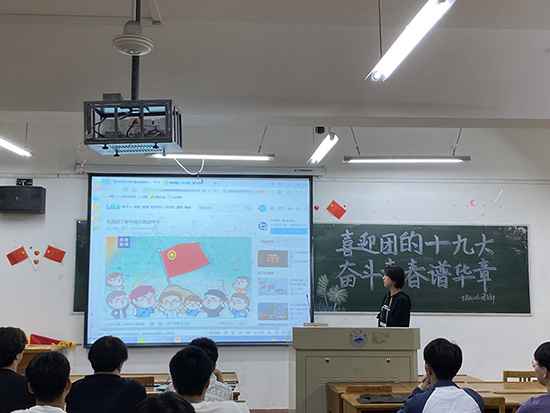 为深入学习贯彻习近平新时代中国特色社会主义思想,引导广大青年厚植爱党、爱国、爱社会主义的情感,争做有理想、有本领、有担当的时代青年,庆祝中国共产主义共青团第十九次全国代表大会的召开。开云官网于5月23日晚在竞知楼各班教室开展“喜迎团的十九大,奋斗青春谱华章”主题团日活动。