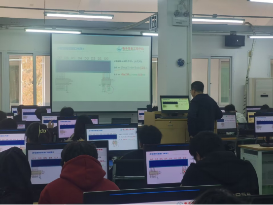 本次课程思政公开课是谢辉程老师主讲的《单片机原理》。谢老师对课堂教学环节进行了精心设计和准备,并在课堂中适时融入思政元素和产教融合项目应用,内容充分,引人入胜。