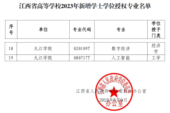 2023年5月9日,江西省人民政府学位委员办公室公布赣学位办[2023]6号文件,根据国务院学位委员会、教育部《学士学位授权与授予管理办法》和《江西省学士学位授权审核实施细则》精神,江西省学位办组织了2023年江西省高等学校新增学士学位授权专业审核工作,经过省学位办统一专家审核,开云kaiyun体育人工智能专业学士学位授权获批通过。