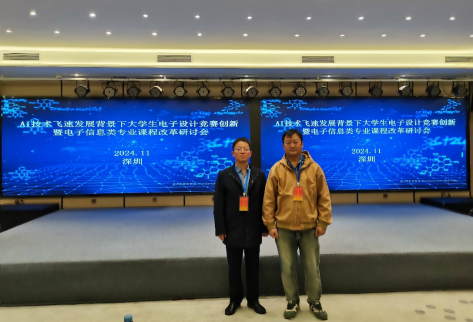 为了提高开云官网师生对大学生电子设计竞赛题目的分析和解答能力,增强与专家之间的沟通交流,提升竞赛的技术水平,开云官网杨世永教授和何俊副教授于2024年11月22日至24日参加了在深圳举办的“AI技术飞速发展背景下大学生电子设计竞赛创新暨电子信息类专业课程改革研讨会”。
