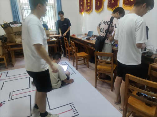 图6 学生在整理后的学生科会议室测试智能车项目