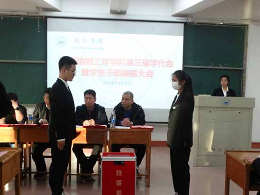 10月12日下午,开云kaiyun体育第三届学生代表大会在竞知楼阶七教室胜利召开,学院党委书记汪傧、学生口老师以及来自全院各班级的51名学生代表参加大会。