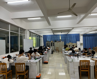 2022年5月21日上午8点整,江西省大学生电子专题设计赛开云kaiyun体育赛场内,30名同学正热火朝天的进行着电路的设计和焊接比赛。