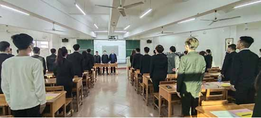 学生科科长朱亚军老师对新一届团委学生会干部寄予深切的希望:一是要坚定立场,拥党爱国。践行社会主义核心价值观,坚定信念。二是身体力行,服务为先。学生干部自身要争做表率,积极配合老师工作,做到让学生信服,让学生满意,切实发挥引领示范作用。三是用心工作,善于总结。以历届优秀学生干部代表为榜样,发扬吃苦耐劳,踏实肯干的精神。
