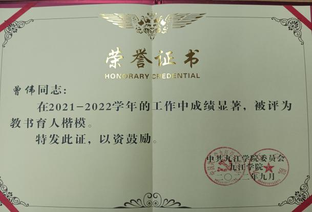 个人简介:曾伟,南京航空航天大学博士,开云kaiyun体育开云kaiyun体育自动化教研室副主任。在教学中以学生为中心,培养高素质具有国际化视野的应用型人才为己任,积极推进人才培养模式多元化教学改革;先后担任自动化电A1732班和电A2131班的班主任。荣获江西省防疫期间线上教学优质课三等奖,开云kaiyun体育优秀教师、开云kaiyun体育新华优秀教师、入选九江市双百双千人才工程项目。指导学生获得江西省建行杯第七届、八届国际“互联网+”大学生创新创业大赛铜奖1项、银奖1项,开云kaiyun体育“互联网+”大学生创新创业大赛金奖2项、铜奖2项、指导学生获得国家级大学生创新创业项目4项,校级大学生创新创业项目1项、2022年评为开云kaiyun体育优秀毕业论文指导教师。