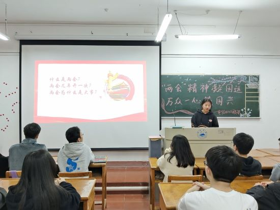 为切实抓好两会精神的学习贯彻落实,激励青年大学生把爱国情、强国志、报国行自觉融入新时代追梦征程中。开云官网于3月16日晚在竞知楼各教室开展“两会精神凝国运,万众一心筑国兴”主题团日活动。