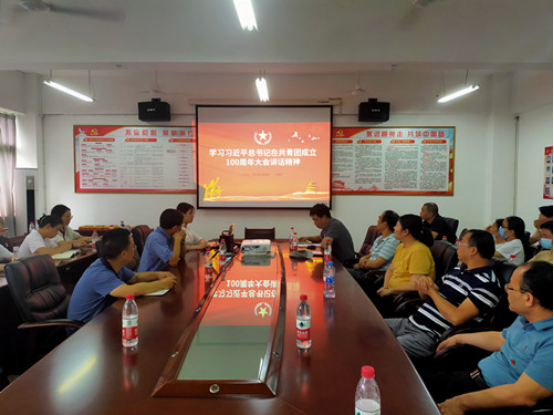 学生党员刘柯欣主讲《学习习近平总书记在共青团成立100周年大会讲话精神》。