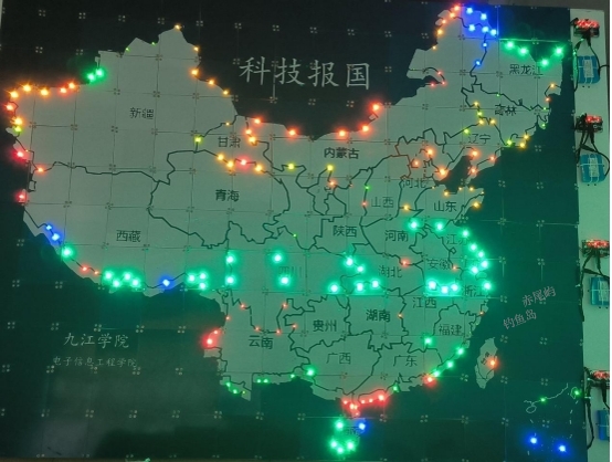 学院以“专业实践+思政教育”为抓手,打造沉浸式育人场景。开展“点亮中国地图”厚植家国情怀:把电子工艺实训和爱国主义教育有机融合,让学生在焊接调试中体悟“科技报国”使命,最终用 180 块 PCB 板与数百颗 LED 灯拼装出闪亮中国地图,成为生动的思政教育载体。推进校企合作锻造实战能力:学院与江西力源海纳公司共建“力源班”,举办“力源杯”智能小车竞赛,提升学生团队协作能力和专业实践能力。