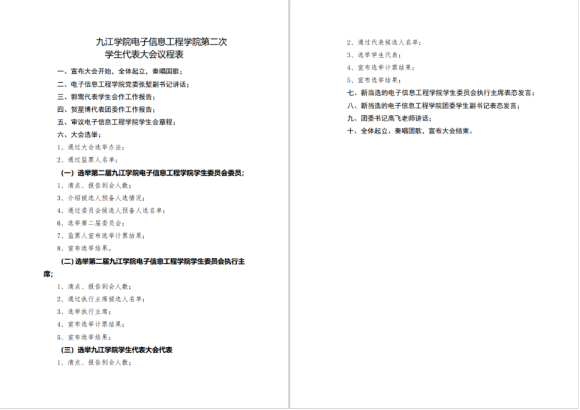 1.新一届学生会委员会由全体学生代表大会选举产生后,一周内召开第一次全体委员会议;