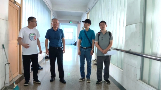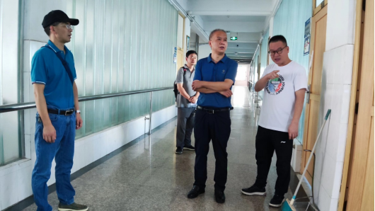 邓长寿一行在樊红社的陪同下参观各个备赛区域,与带队老师进行了深入交流,详细了解了竞赛的开展进度、技术难点和比赛策略。同时对老师们的赛前组织准备工作表示肯定,对同学们展现出的积极态度和扎实技能表示赞赏。