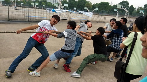 在最后一项拔河项目中,由3个班两两对拔,赢的班继续拔分成胜负。由于之前学院开展过比赛,学员们都信心倍增,最终2班经过顽强拼搏夺得拔河项目的冠军,3班获得第二名,1班获得第三名。