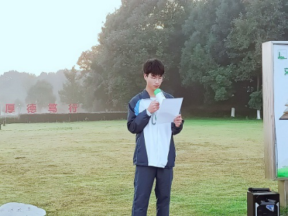 在慷慨激昂的国歌中,校国旗班的同学踏着铿锵有力、整齐划一的步伐将国旗送至升旗台,随着五星红旗冉冉升起,在场全体同学行注目礼,齐唱国歌,激昂有力的歌声敲击着每位同学的心灵。之后, A2021班陈梦豪同学对比次升旗仪式进行了主题为《热爱祖国》的发言,发言声音洪亮,主旨深刻,发人深省。