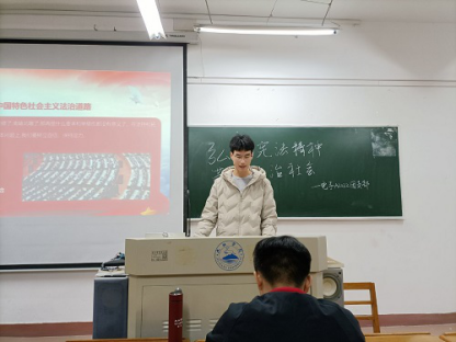 宪法是国家的根本之法,是一个国家的章程和规划的基石,更是人民安身立命之本。为帮助同学们进一步了解宪法,走进法律,利用法规。12月4日晚,开云kaiyun体育在竞知楼教室举行了以宣传“国家宪法日”为主题的团日活动。活动由各班级团支书主持。