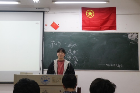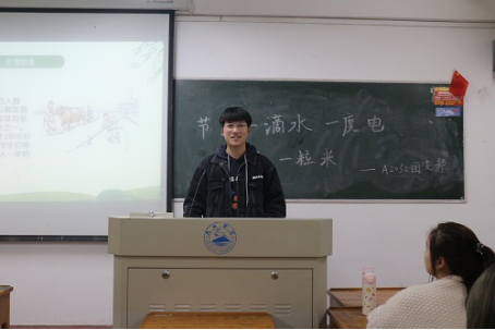 活动秉持着寓教于乐的精神,各班团支书首先让同学们提出生活中铺张浪费的行为,然后展示了预计这样的行为会导致的结果——环境上不可逆转的破坏和资源的严重短缺。同学们在看到屏幕上各种触目惊心的数据和图片后,认识到节约资源,保护地球就是在保护自己,为自己的子孙后代造福。同时,团支书宣讲了节约资源模范居民每天的习惯,如一水三用、人走灯关等。最后,团支书向同学们征求了关于资源节约活动的标语,向大家摆明了地球资源短缺等实际问题,提倡同学们在日常生活中节约资源,养成好习惯。
