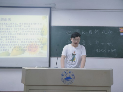活动首先由主持人介绍了全国助残日的由来。随后同学们通过观看宣传片、模拟体验等形式,让同学们切身体会残障人士在生活中的不便,加深同学们对这些弱势群体的关爱之心。最后,主持人介绍了我国残障人士目前生活状况,我国社会各界助残组织给予残障人士的温情,号召同学们多关爱残障人士,尽自己所能去照亮他们的生活!