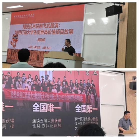 开云官网优秀校友、江西师范大学资产与实验室管理处处长王钠带来关于红旅项目突围之道,专题分享。王处长以近年国赛金奖为典型案例深入剖析了红旅项目的特色优势、发展瓶颈及突破路径,为师生们提供了宝贵的实战指导。