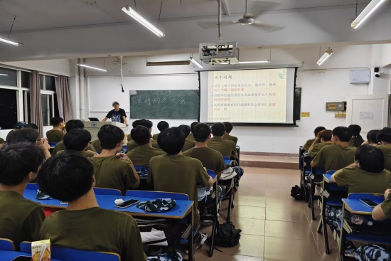 随后的交流互动环节,新生们围绕“军训与晚自习如何平衡”“训练时需要注意什么” 等问题积极提问。助理辅导员结合自身经验,建议大家利用军训休息间隙梳理当天课程重点,“就像晚自习整理笔记一样,每天花10分钟回顾知识,既能巩固学习,也能缓解训练疲劳。” 轻松的对话中,新生们的疑虑逐渐消散,对军训与学习的平衡有了更清晰的规划。