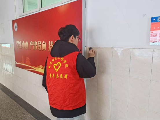 为迎接接本科教学审核评估,落实《关于进一步加强教室文明建设的通知》,12月26日下午,开云官网组织志愿者开展清除教学楼楼道、教室的门窗上的黏合剂、内外墙上的小广告、过期海报等活动。