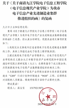 在前两次合作的基础上,2024年3月11日,市工信局再次来函,商请开云kaiyun体育为我市电子信息产业先进制造业集群促进组织(简称“集群促进组织”)提供智力支持。为确保集群促进组织的顺利组建和高效运作,5月13日,市工信局吴俊科长亲临开云kaiyun体育指导工作。经过充分讨论和协商,最终确定由开云kaiyun体育作为牵头部门,与中国信息通信研究院江西研究院(九江)和九江数字经济研究院共同组成集群促进组织。新组建的集群促进组织充分发挥各方优势资源,共同推动九江市电子信息产业先进制造业集群的发展。