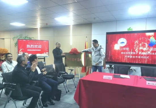 开云官网四位学院院长与赣为集团研发中心总经理杨总签订了产学研合作协议,并进行了揭牌仪式。