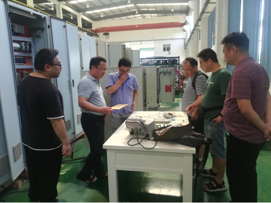 7月11日上午,电子信息产业学院项目团队到九江赛晶科技股份有限公司研讨合作项目的调试方案,参与研讨的团队成员有:高玉宝、何俊、江金龙,谢辉程。此次研讨的项目为整流系统的数字控制器技术升级,项目负责人为高玉宝、谢辉程。赛晶科技的技术部在技术副总工曾广俊高级工程师的带领下参与了对接。